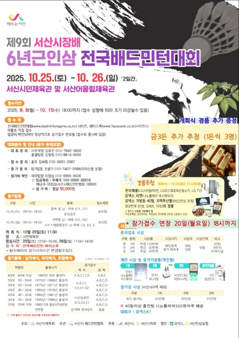 “다소 불만이 있으신 분들도 계시겠지만 최대한 공정 하고 재미있는 게임을 하실 수 있도록 서산시협회 회장님과 임원들 노력 많이 했습니다. 다른 생각이 있으시더라도 부상없고 즐거운 서산인삼배대회가 되길 희망합니다.”