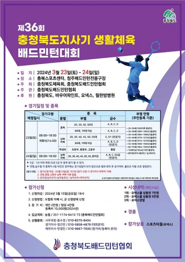 대회장소 충북스포츠센터 . 청주시배드민턴전용구장