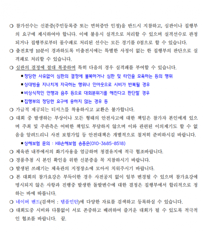 홈페이지 http://네이버 밴드 [템플민턴] 검색
