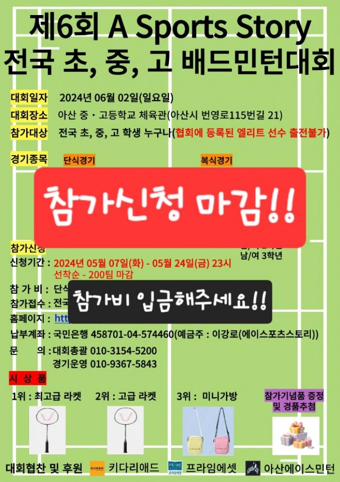 제6회 A Sports Story 전국 초, 중, 고 학생 배드민턴 대회
