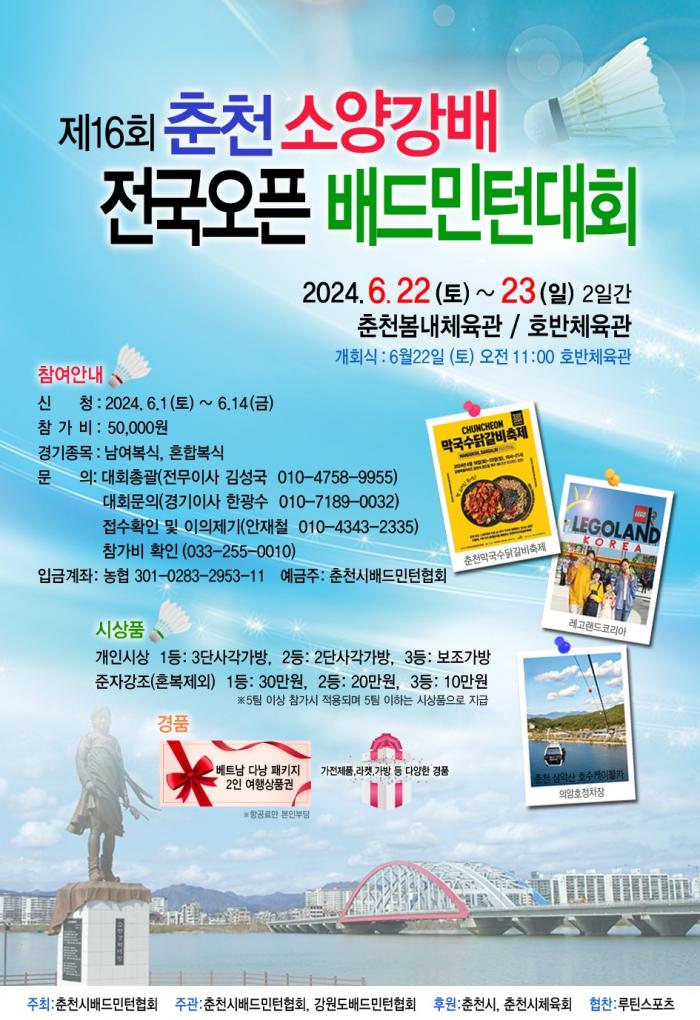 . 입금계좌 : 농협 301-0283-2953-11 춘천시배드민턴협회