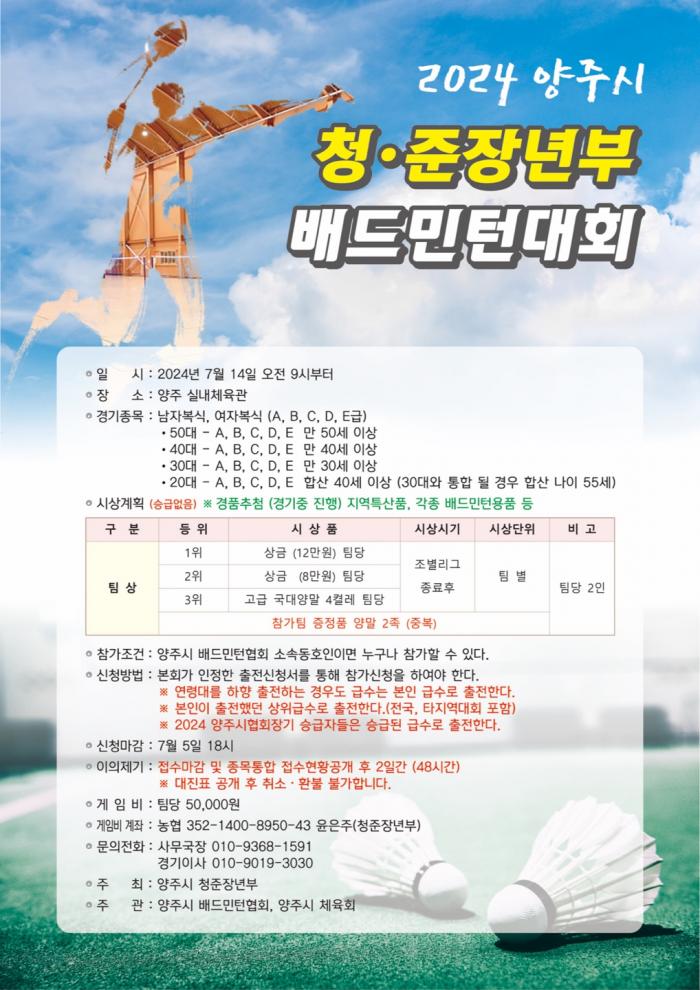 ˙ 참가자격: 양주시 배드민턴협회 등록된 동호인