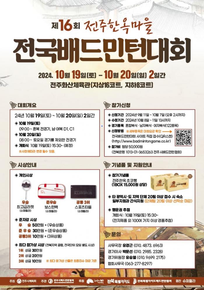 제 16회 전주한옥마을 전국배드민턴대회 진행 관련 공지