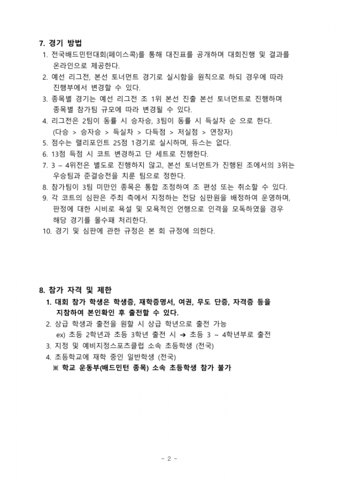 전국 배드민턴대회 (초등부) 참가요강