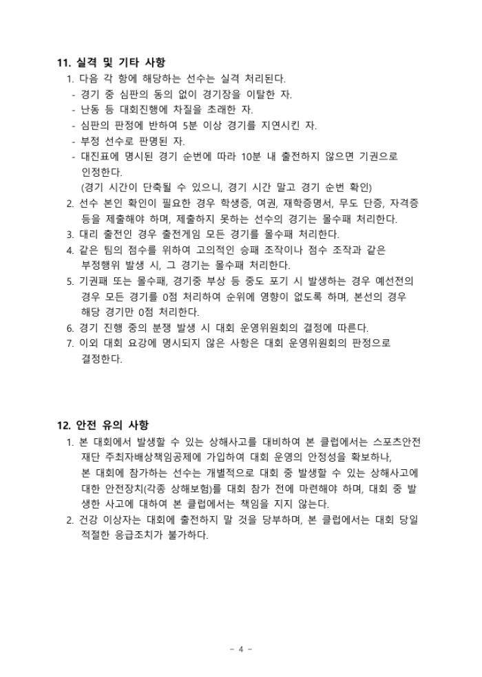 - 경기 운영 문의 : 주재현 지도자 (010-4559-4997)