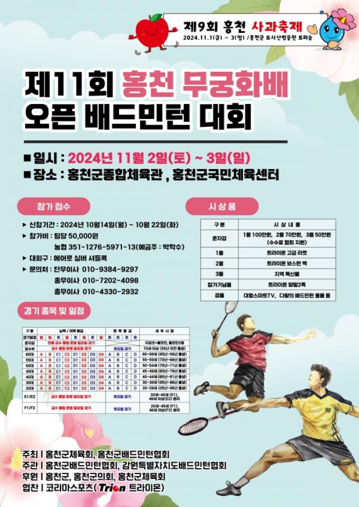 제11회 홍천무궁화배 오픈 배드민턴대회 2일차 입니다.