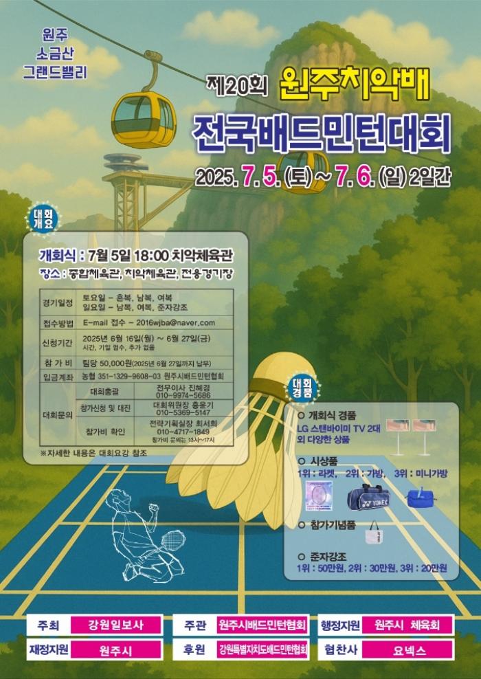 원주배드민턴전용경기장 : 강원특별자치도 원주시 한지공원길 117-2