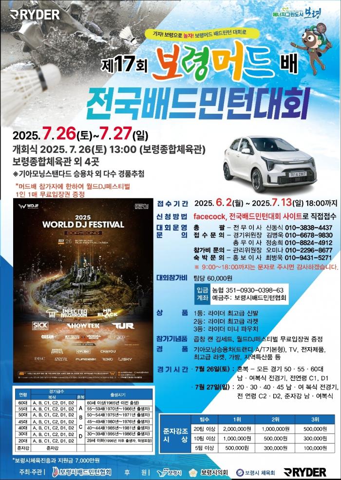 제17회 보령머드전국배드민턴대회 접수후 입금까지 부탁드립니다.