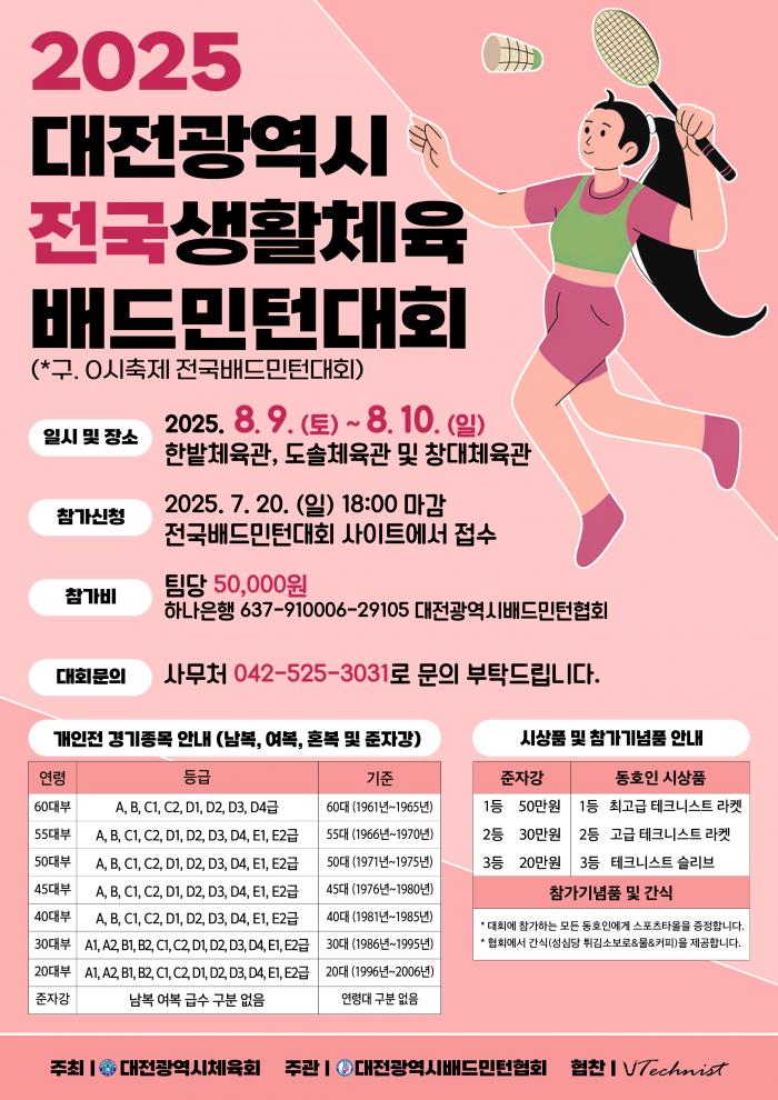2025 대전광역시 전국생활체육 배드민턴대회에 관한 종합 안내사항