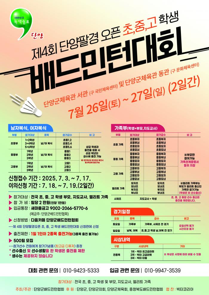 일요일 단양군체육관-동관(구 문화체육센터)에서 진행합니다.
