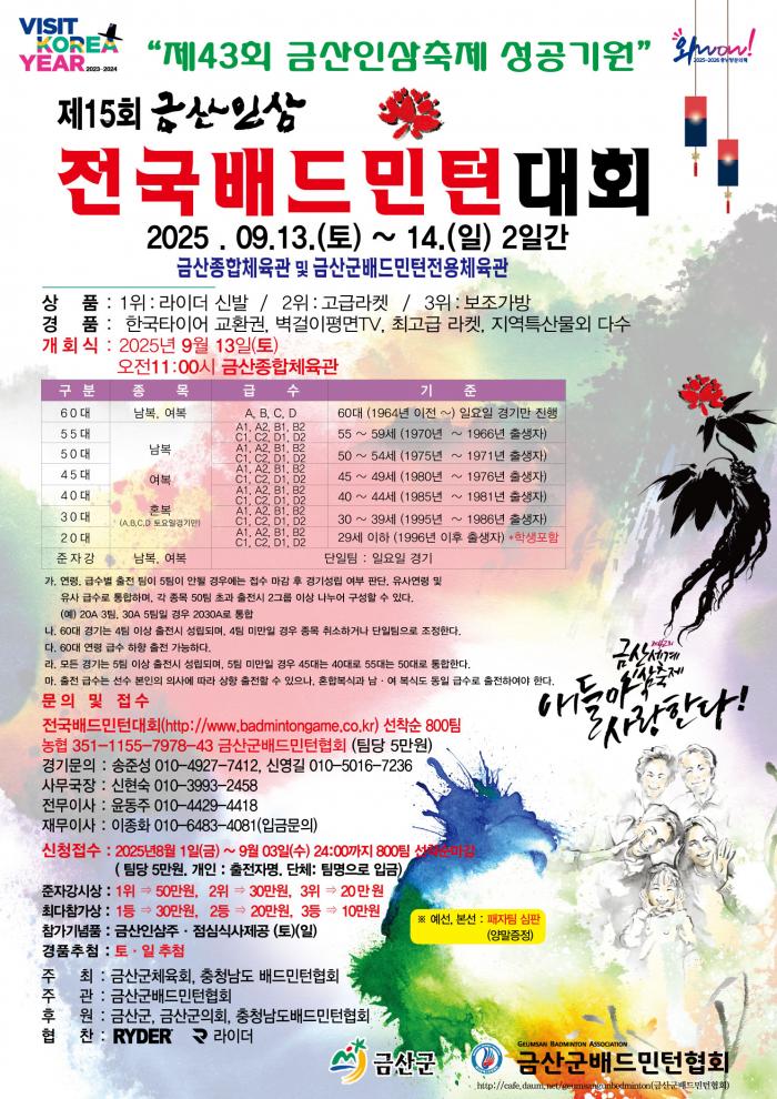 ◎  2025 금산인삼배 통합급수 안내