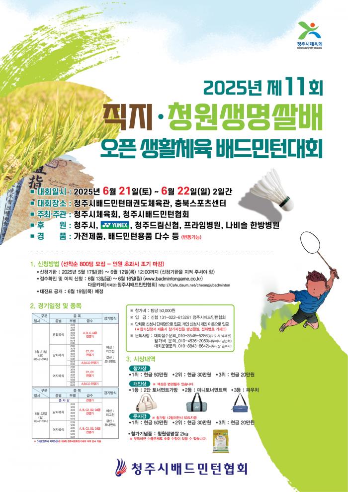 제11회 직지 청원생명쌀배 오픈 생활체육배드민턴대회