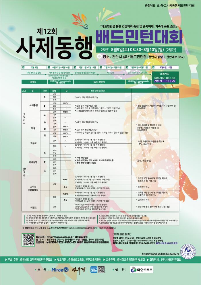 또한 협력해 주시는 교육지원청, 천안시배드민턴협회에 감사의 말씀을 드립니다.
