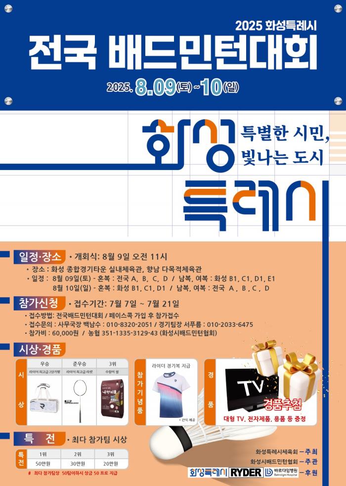 바로 앞으로 다가온 화성특례시 전국배드민턴 대회 준비로 각 대의원님들 , 협회 임원님들의 애쓰심에 감사드립니다.