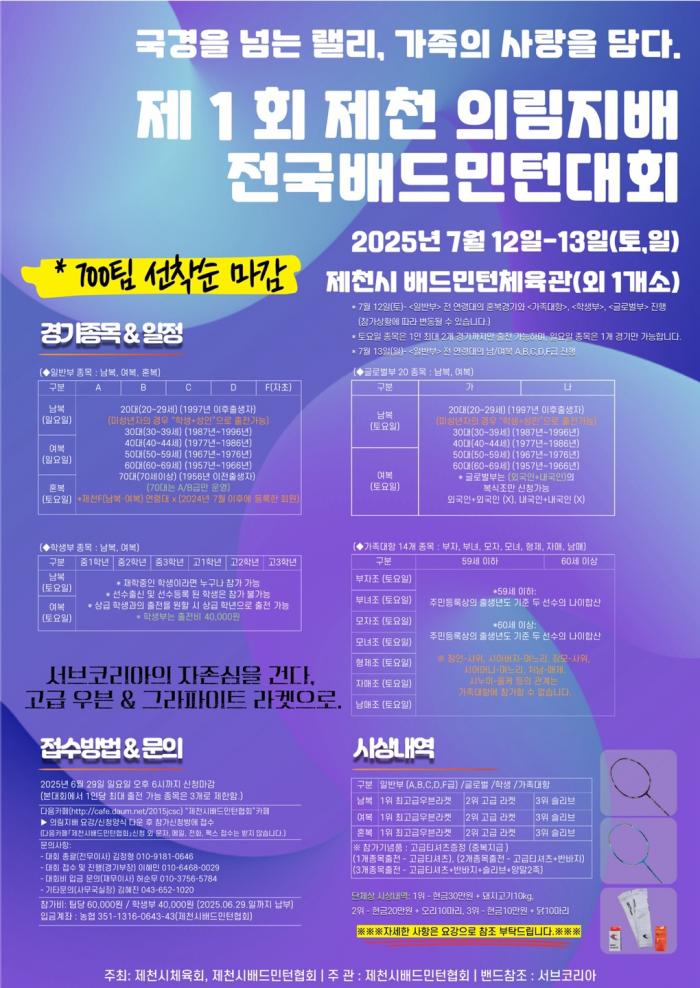 2025.06.03 제1회 제천 의림지배 공식 요강 업로드