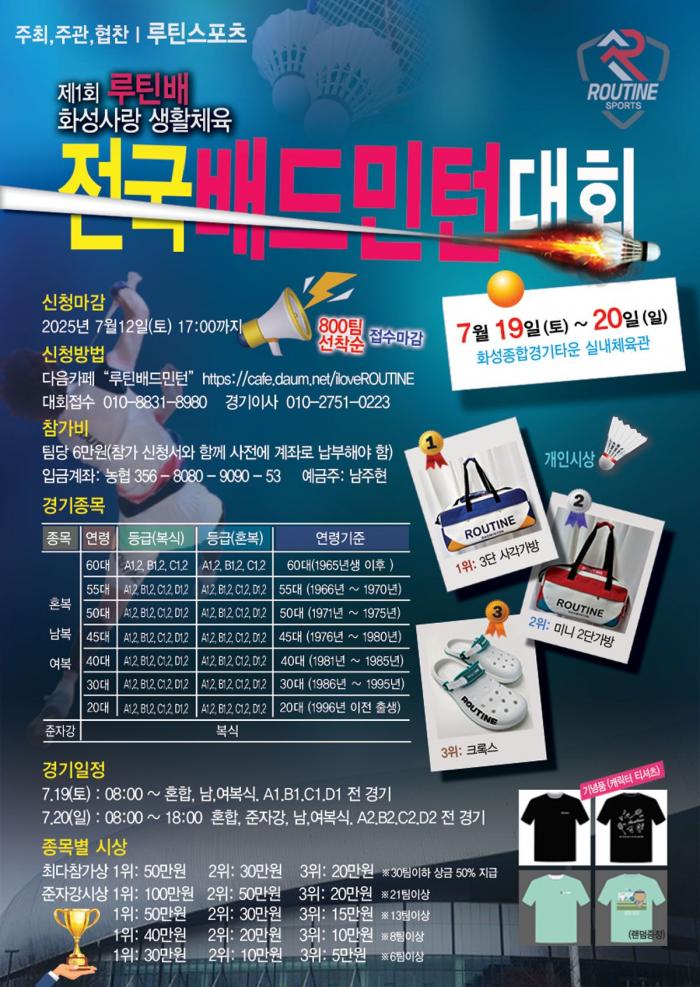 제 1회 루틴배 화성사랑 생활체육 전국배드민턴대회통합관련입니다.