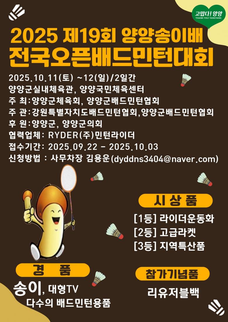 2025년 제19회 양양송이배 전국오픈 배드민턴대회 통합급수