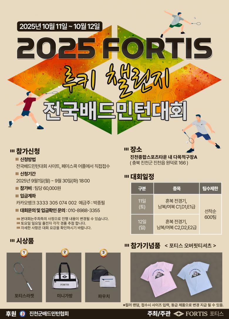 10월 11일 (토요일) 09:00 혼복경기부터 진행 후 남,여복 경기진행