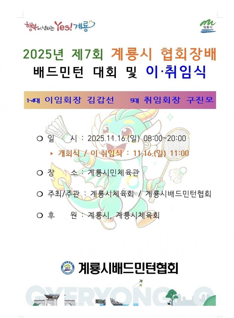 <제7회 계룡시배드민턴협회장기 통합 안내>